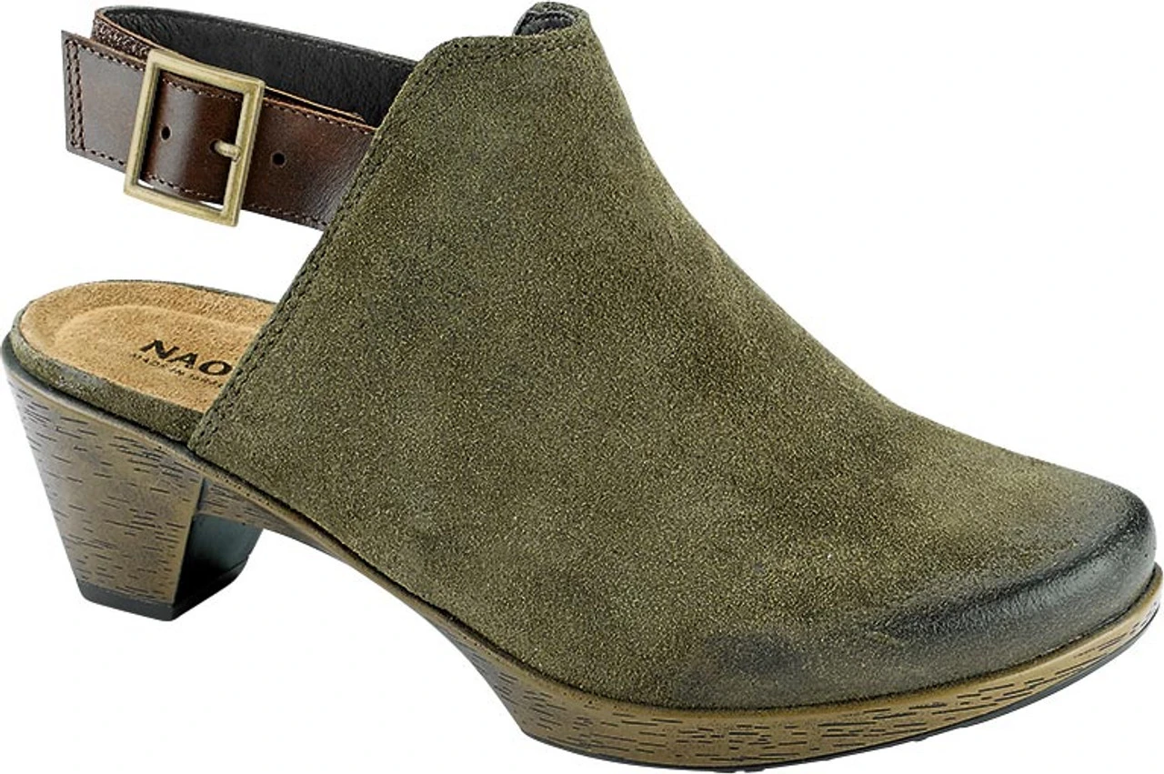 Englin’s Fine Footwear presents the women’s ‘Upgrade’ from Naot. The Naot Upgrade is is a fashionable clog wth a heel. This style features a hook and loop backstrap and contrasting leathers. Naot’s anatomic cork & latex footbed is wrapped in pampering suede and molds to the shape of the foot with wear.The Supreme Collection features a metal shank and provides the look of a 2″ heel without the feel.